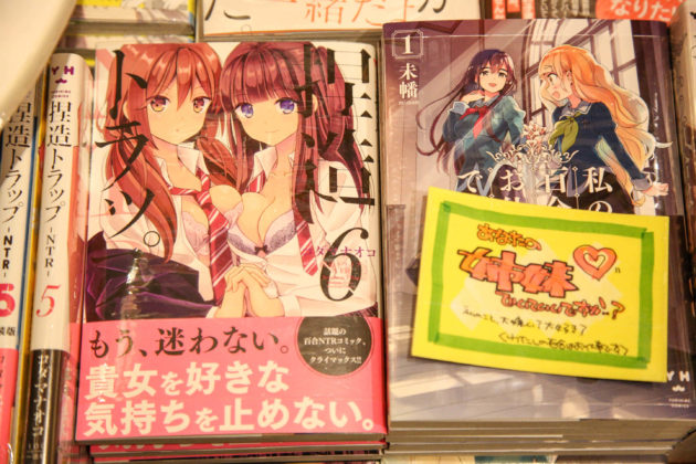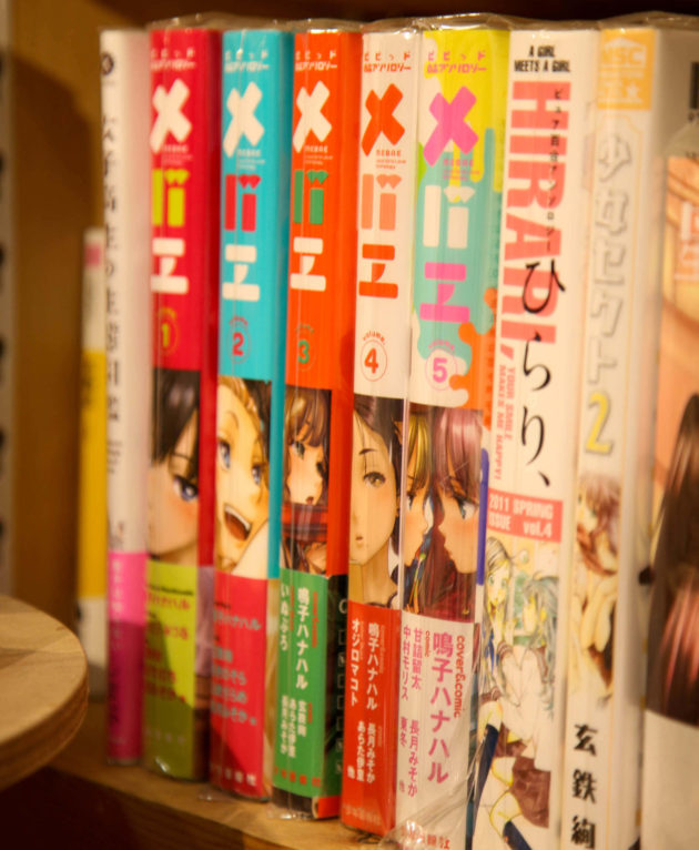 『メバエ』は必ずどの百合棚でも置いています。ただ、絶対にアダルトテイストのある百合マンガは人の目線の高さでは陳列しないようにはしていますね。表に向けて面で陳列すると性的な感じが際立ってしまうので、解釈や需要は色々あると思いますが平積みで提供しています。