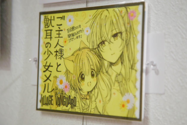 『あの娘にキスと白百合を』は百合好きが安心して読める定番タイトルのひとつ。白峰さんと黒沢さんのもどかしくも微笑ましいドタバタを中心に、様々な少女たちの恋心を丁寧に綴っていく学園ストーリー。展示はカラーイラストが豊富で、華やいだ気持ちに。