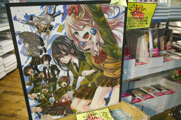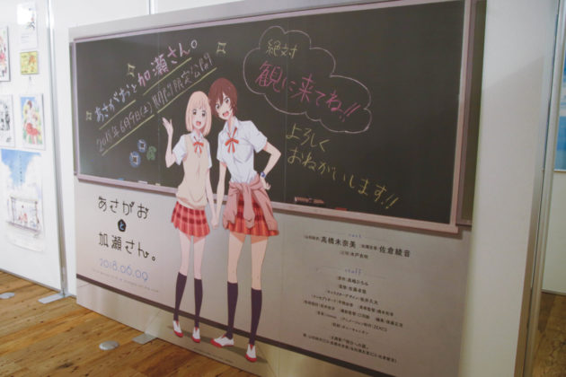 『加瀬さん。』シリーズはとにかく応援したくなる百合作品。山田のいじらしさと加瀬さんの艶やかさの対比、そしてその間に確実に横たわる恋情はストレートで明るい。劇場アニメの公開を控え、場内では特大スタンディが展開。百合展限定のムービーコメントも上映されています。